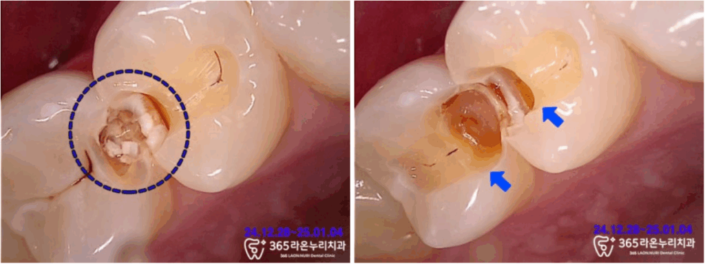 이시림 증상 및 상아질 우식 의심되던 어금니 충치 치료 인레이 세마동 치과 에서 진행한 증례