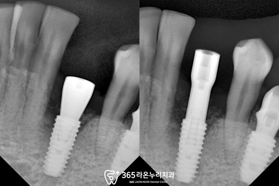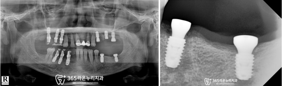 어금니 상실, 흔들리고 아픈 치아 오산 신장동 치과 에서 순서대로 임플란트 진행하여 전악 해결 케이스