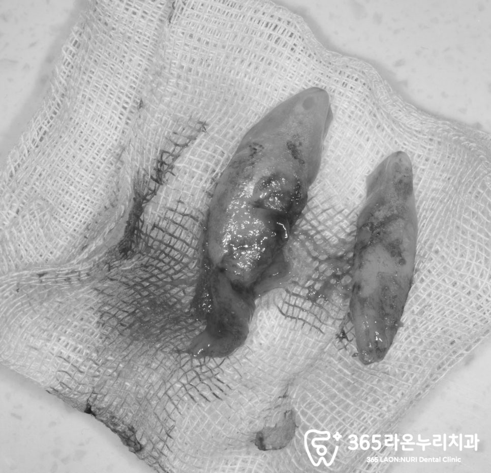 송곳니와 그 주변 염증 육아조직을 제거하고