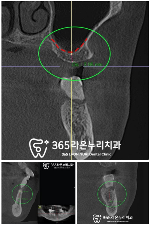 남은 뼈의 높이를 확인하는 과정입니다.