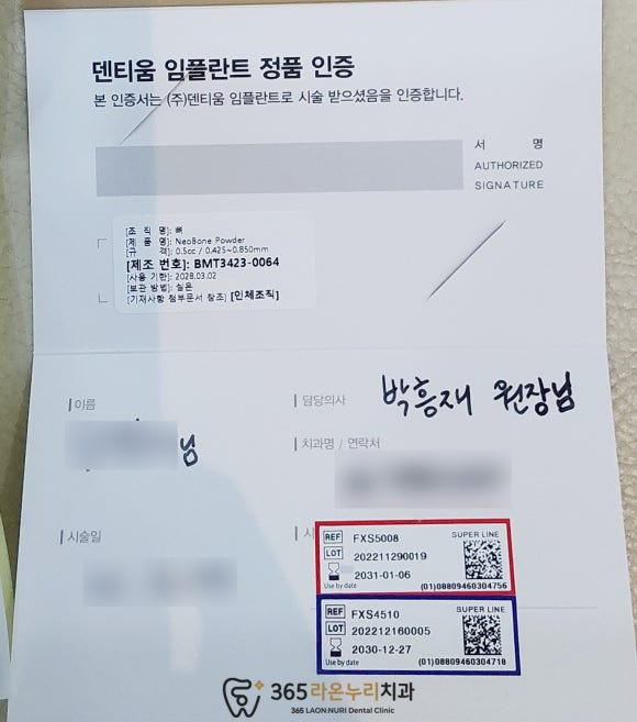 인공뼈를 추가로 이식해 드리고