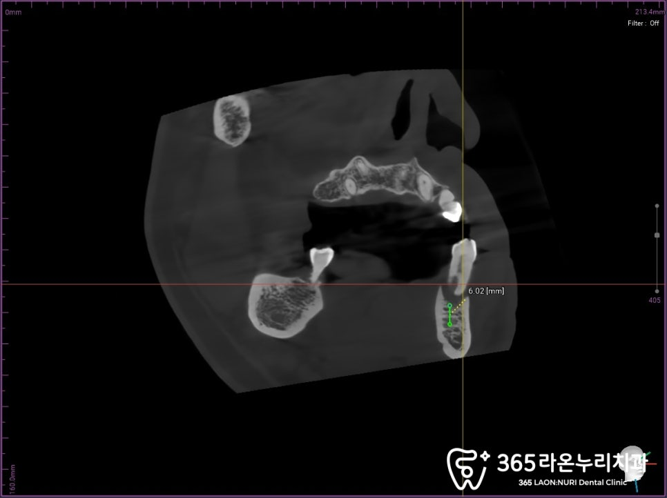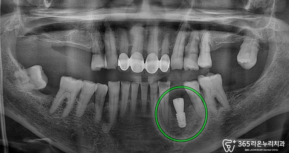 정확한 위치에 식립한 모습을 볼 수 있습니다.
