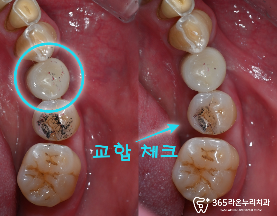 어금니였기에 교합 체크 후