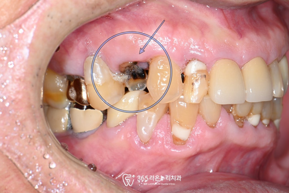 치관이 아예 부러져 치근만 남아있었는데요.