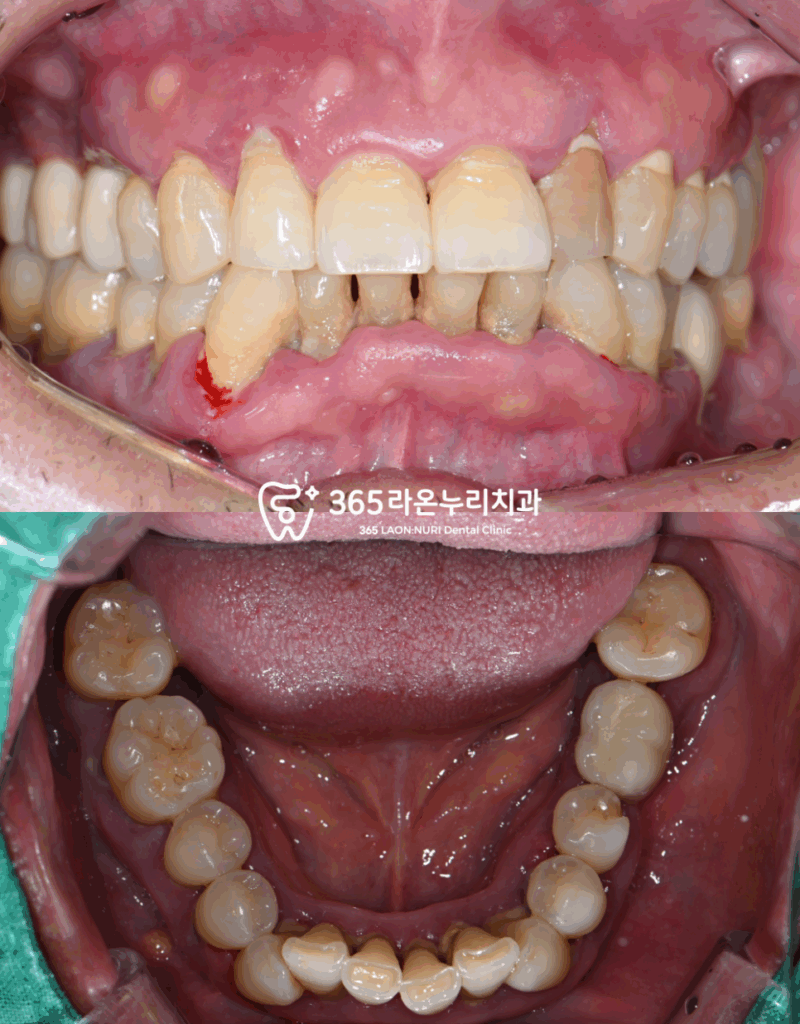 치조골 및 치은이 크게 내려간 것을 알 수 있었죠.