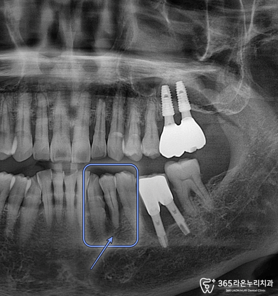 수청동 치과 치주염으로 인한 치근단 염증 없어진 치조골 뼈이식 임플란트 치료 과정