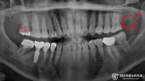 또한 대칭되는 위치에는 치아가 이미 상실된 상태로,