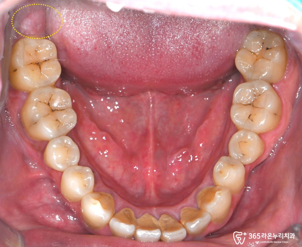 현재, 오른쪽 맨 뒤 어금니쪽으로