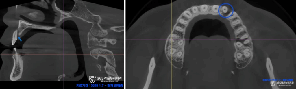 예전부터 아프기 시작한 앞니 잇몸 통증 & 흔들림 있는 곳 발치 후 당일 임플란트 수술 후 임시 치아 올린 동탄동 치과