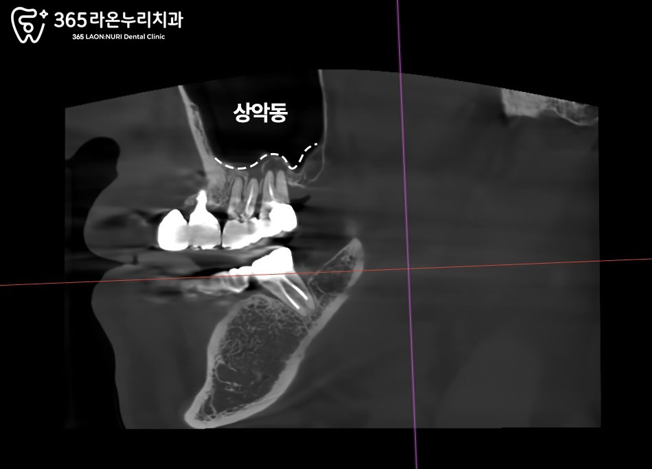 수청동 치과 : 치근 우식으로 흔들리는 치아, 난발치 후 상악동 거상술 및 임플란트 식립 진행