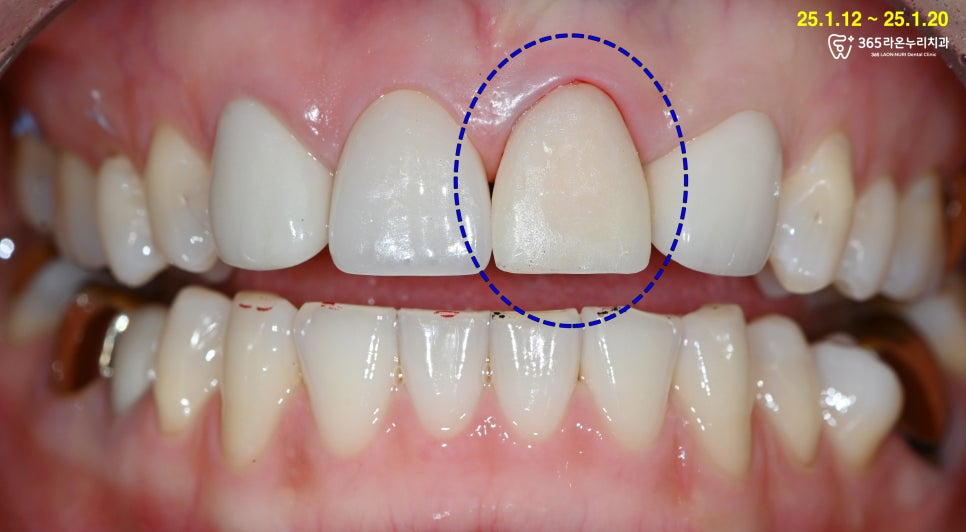 영구치 앞니 깨짐 현상 나타나 수청동 치과 에서 치아 색 나는 당일 임시 보철 제작하여 해결한 사례